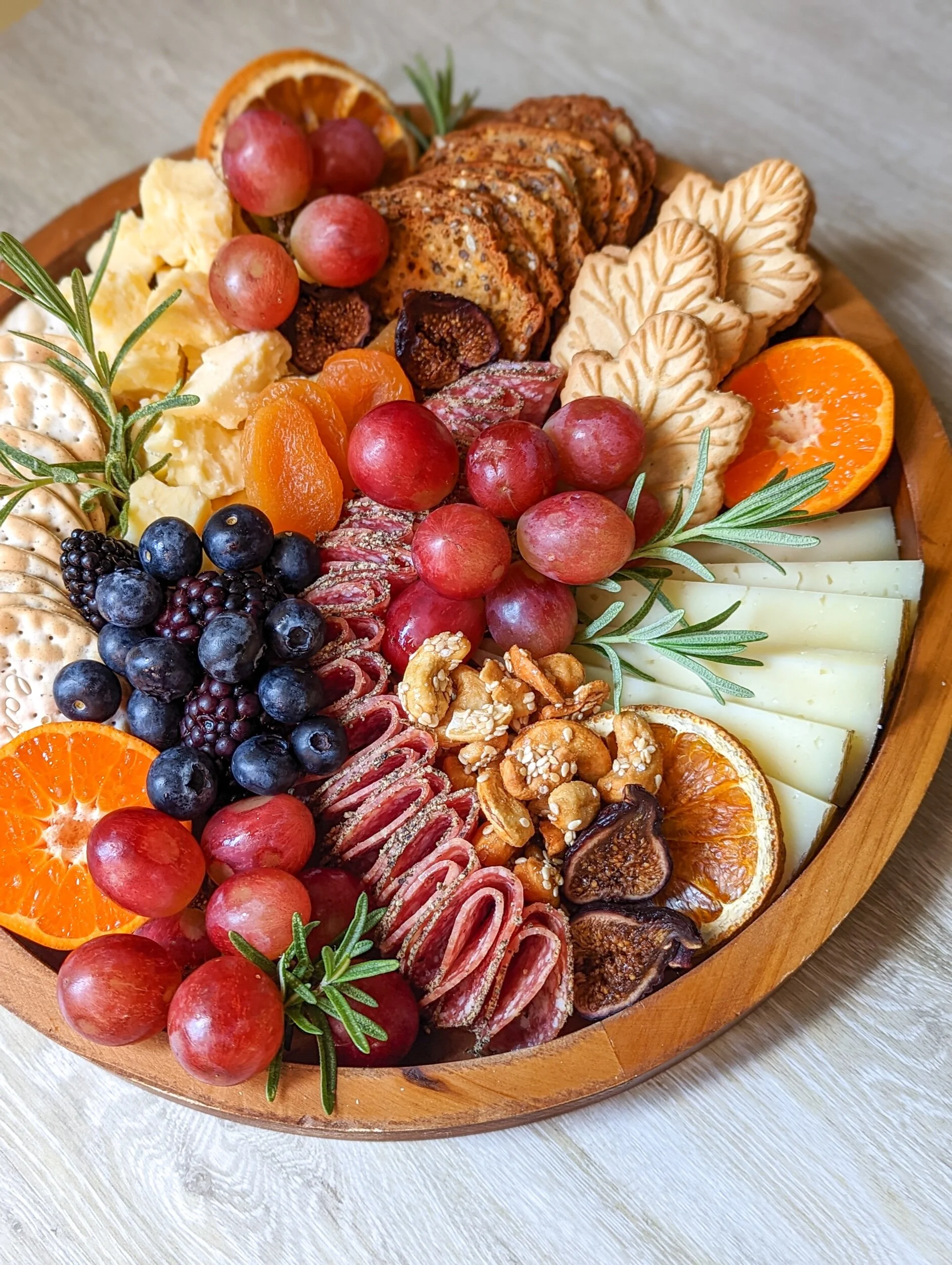 This Thanksgiving board is our 14 in Round board with 4 cheeses, 2 charcuterie, dip, assorted seasonal fruits, accompaniments and a side cracker board. Perfect for 8-10 people as appetizers. Pickup or delivery only available for Wednesday, November 27th between 11am-2pm. Delivery is billed separately